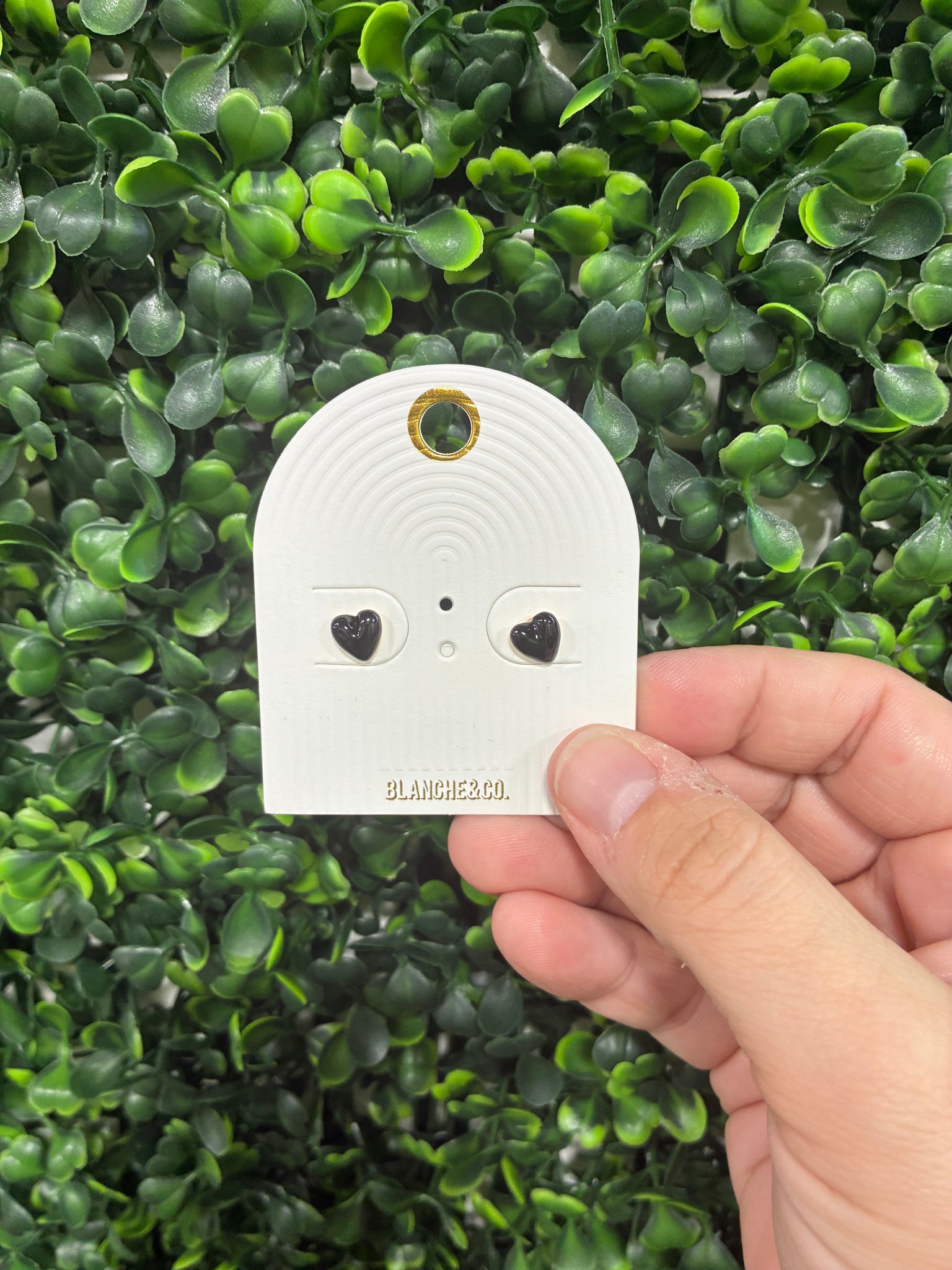 Black mini stud heart earrings