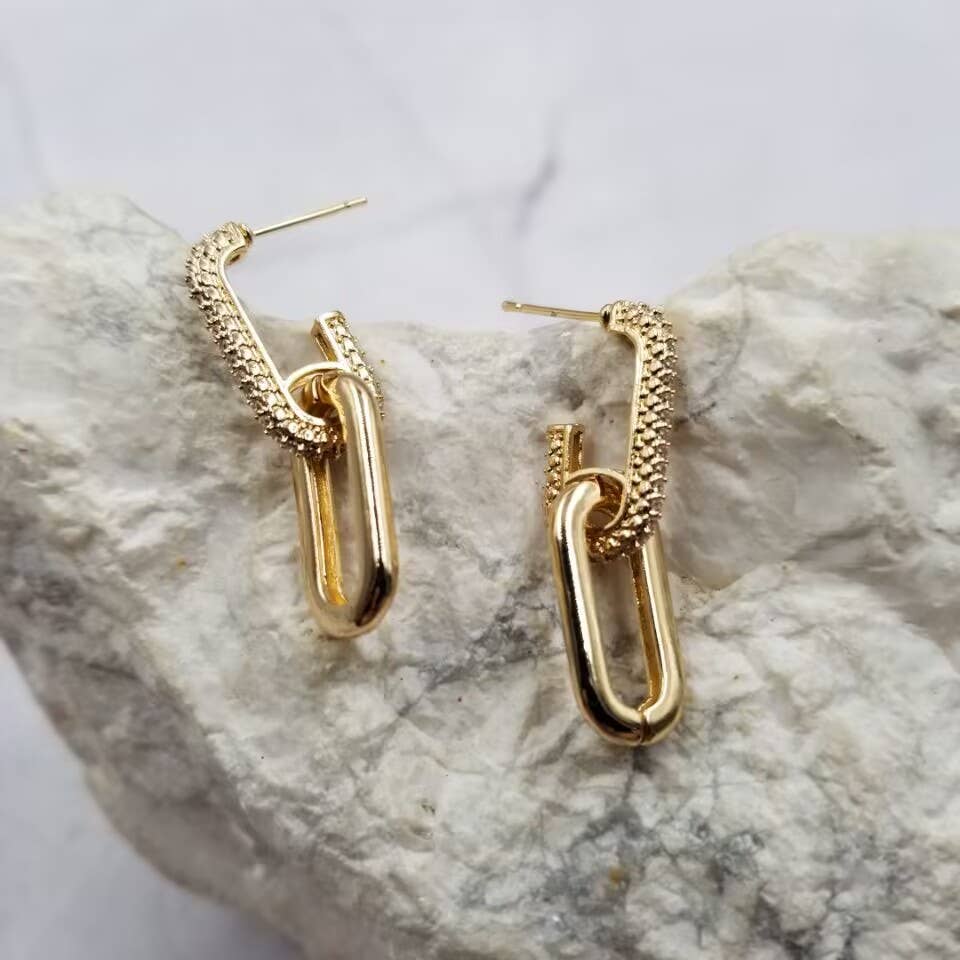Geometric Style Gold plated process Shiny crystal design Copper material Earring size 1CM * 3.5CM