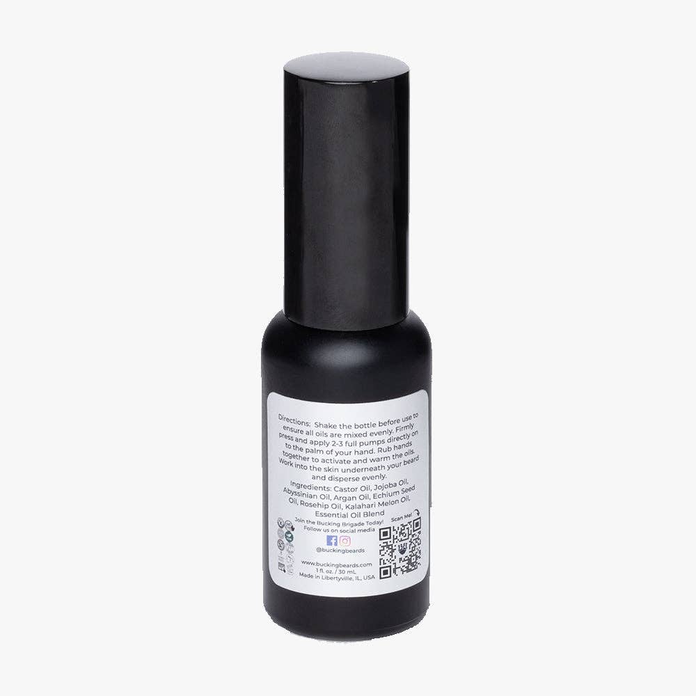 Bucking Beards beard oil brings an ideal environment to let your beard flourish. This product drives moisture into the skin under the beard and helps soften the beard hair. The oil has a light styling attribute to help tame those unruly fly aways and a light scent profile lasting for 4-6 hours depending on environment. This oil delivers the best hydration and prevents flakey/itchy beard hair and skin. Powered by optimized skin-loving natural ingredients including many different unique all natural carrier oils to provide the vitamins needed to have a healthy beard. Great for all beard types, every day and is formulated Allergen Free, Gluten Free, and Vegan.