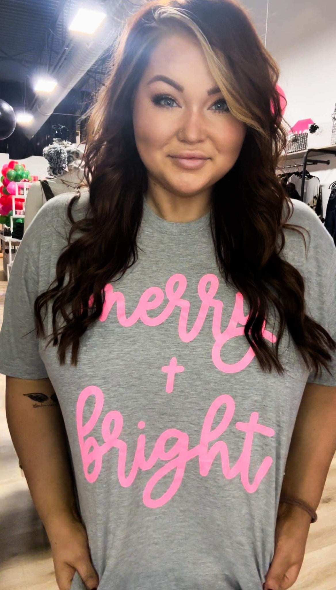 This Merry and Bright tee offers a comfortable unisex fit. Featuring vivid pink writing, it's perfect for the holiday season.