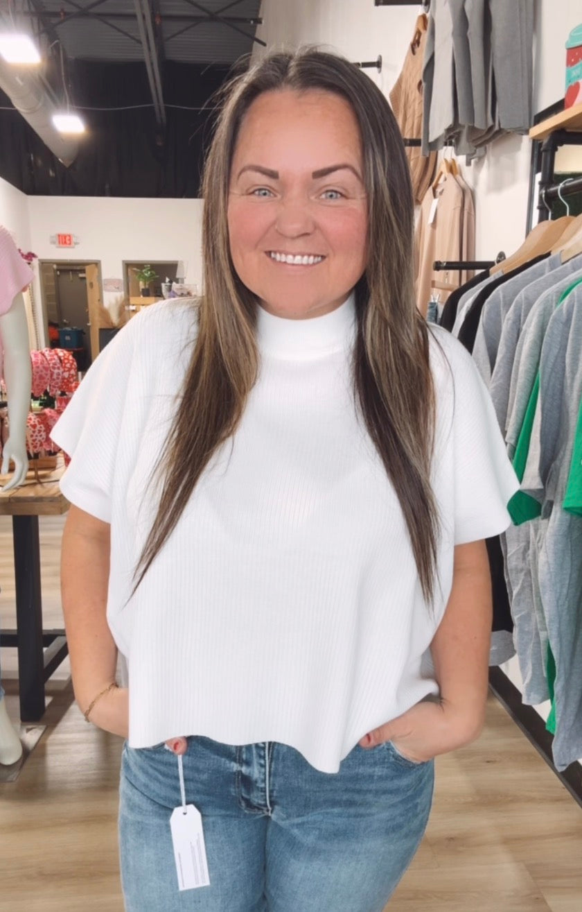 Mock neck ribbed short sleeve sweater