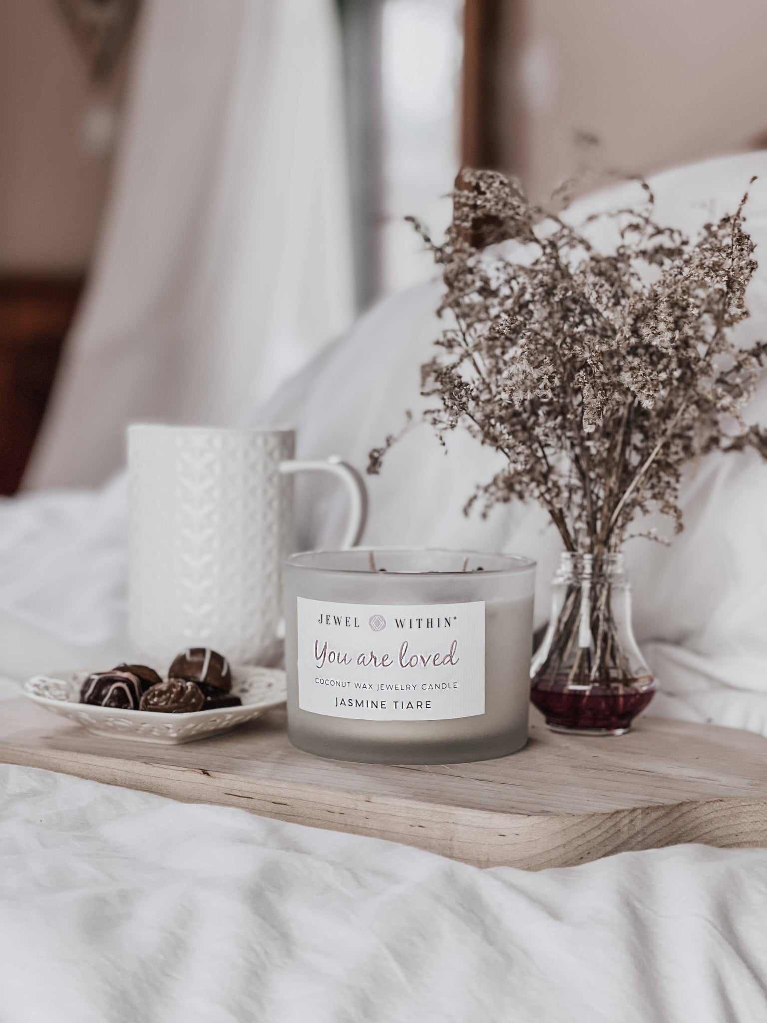 Jewelry Within: A 925 Sterling silver jewelry piece is hidden in the candle for you to enjoy long after it has burned down. It could be a ring, earrings, bracelet or necklace!